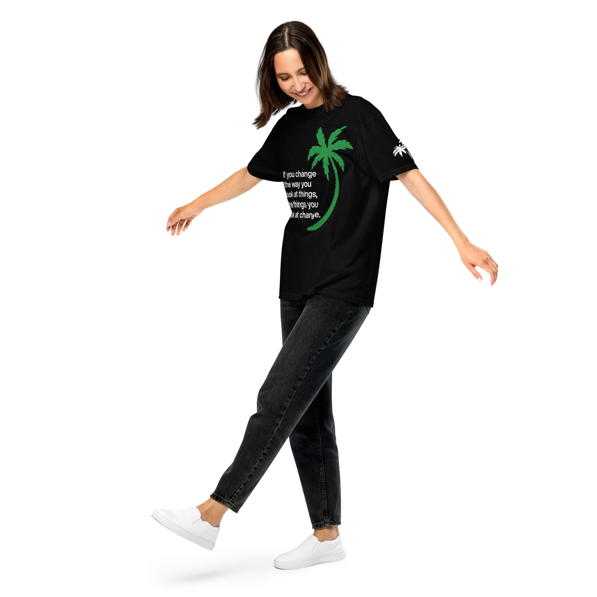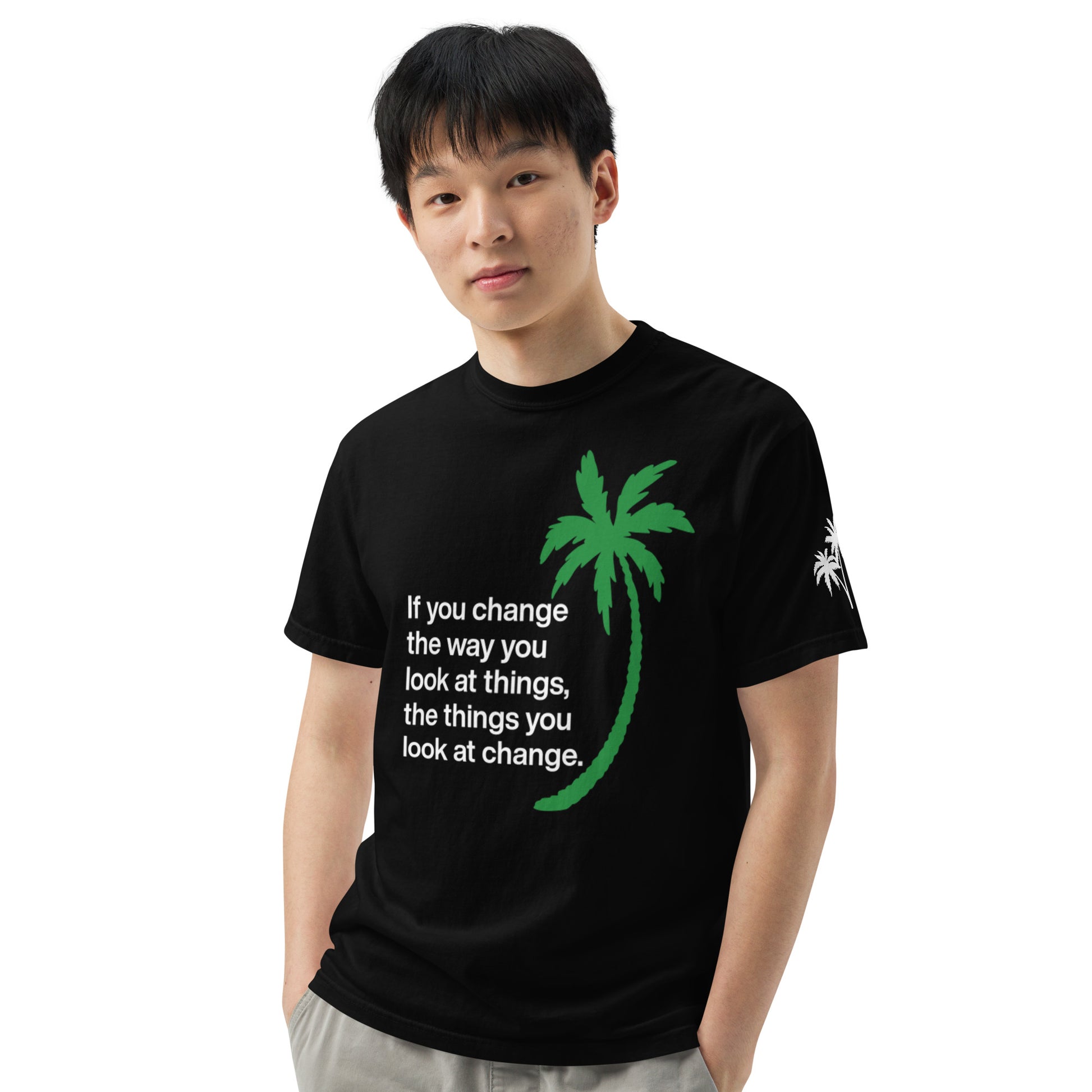 CHANGE THE WAY YOU LOOK AT THINGS PALM TREE T-SHIRT - Sayings and Quotes Unisex Florida Palm Trees Left Sleeve Shirt